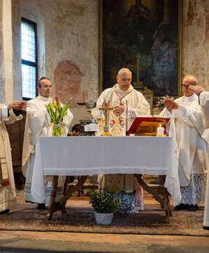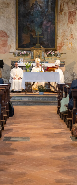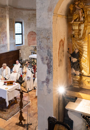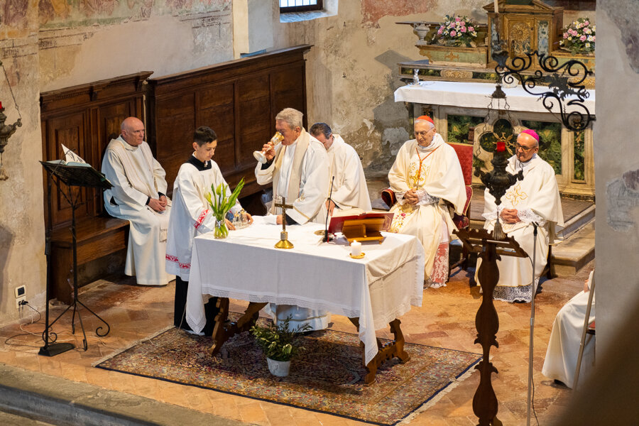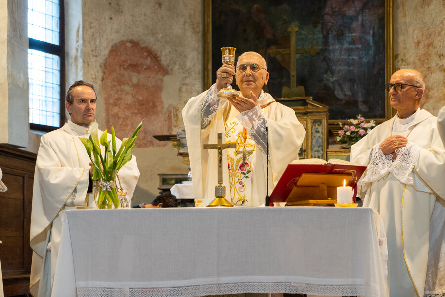 Celebrazione della messa presso la chiesa del monastero San Pietro in Lamosa a Provaglio.