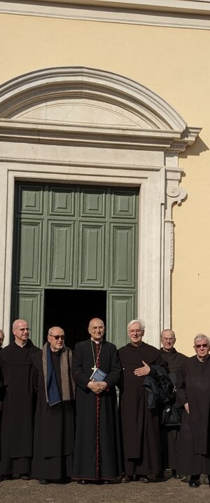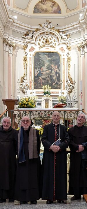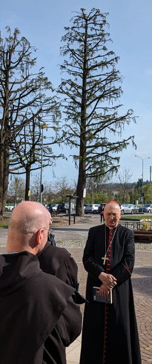 Sua eccellenza cardinale Mario Zenari con il Priore.Padre Gino Toppan presso la cripta della madonna della.neve
