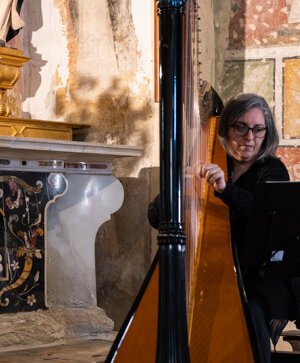 Durante la messa Barbara Da Parè ha accompagnato con l'arpa i passi più importanti.